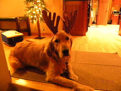 Riley was too tired to care when the girls put reindeer antlers on him!